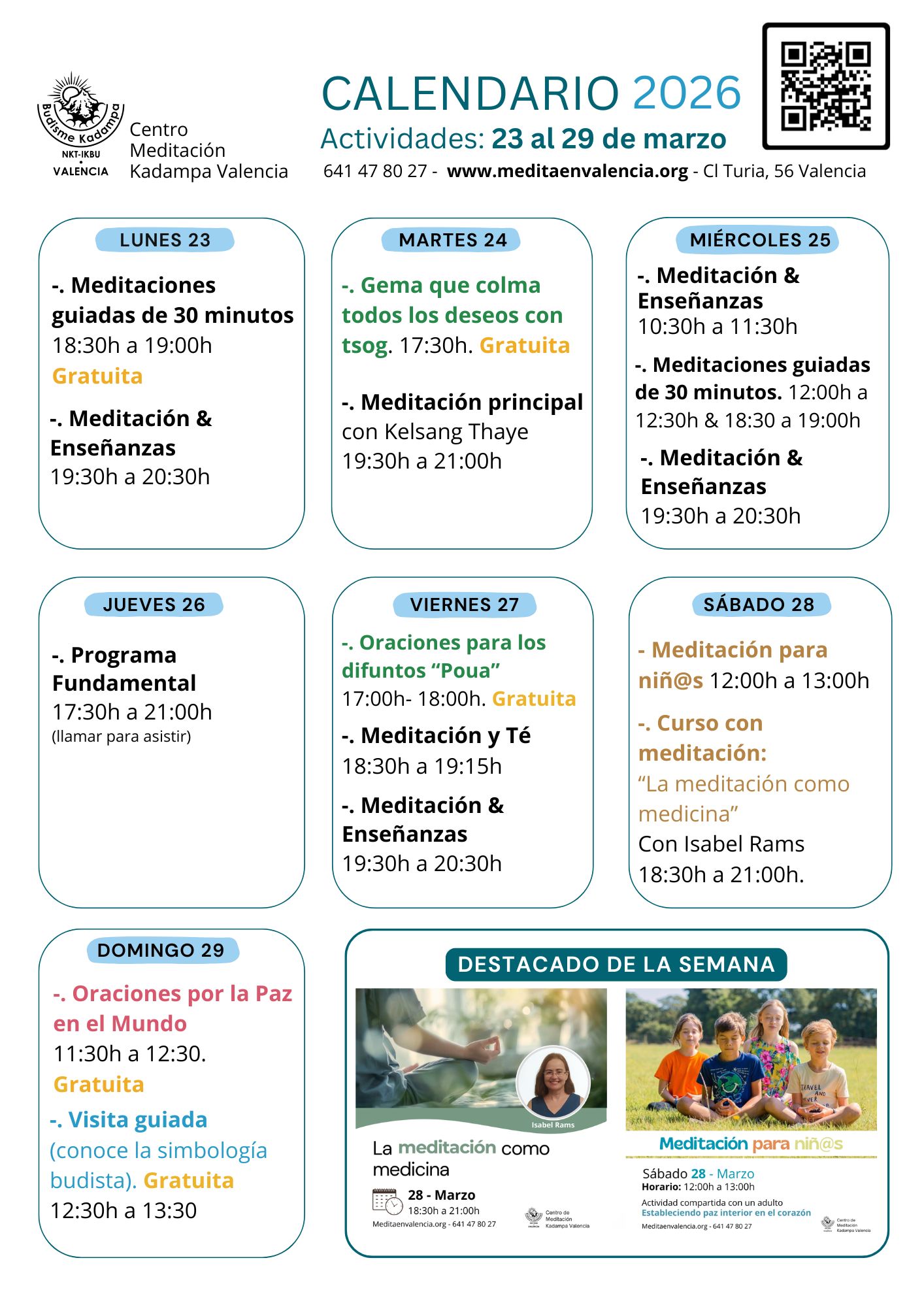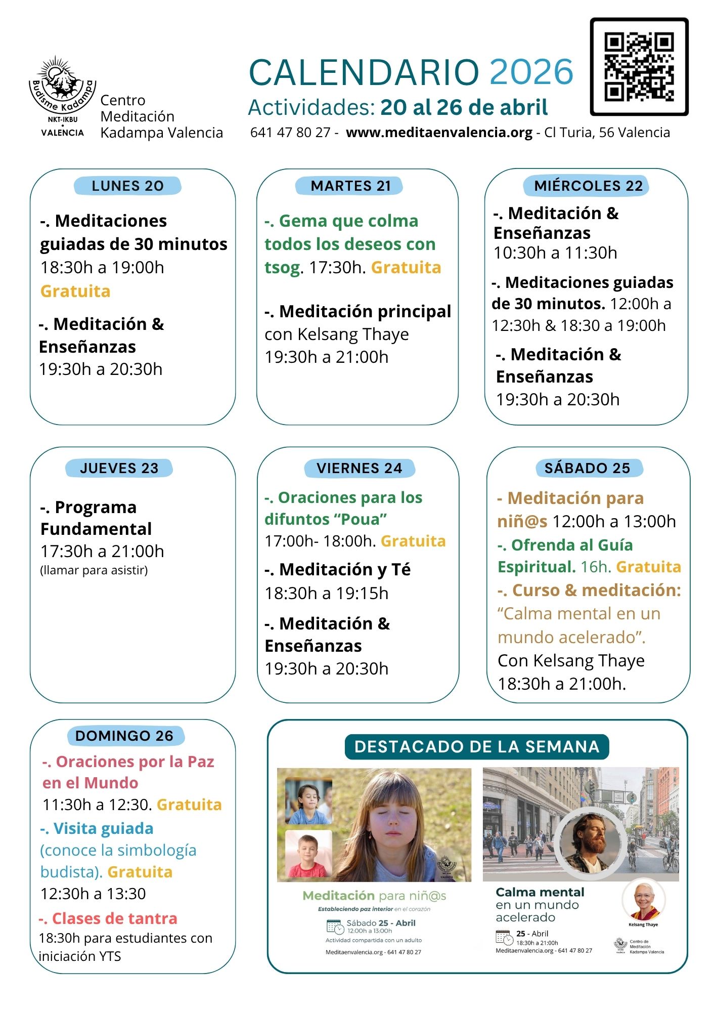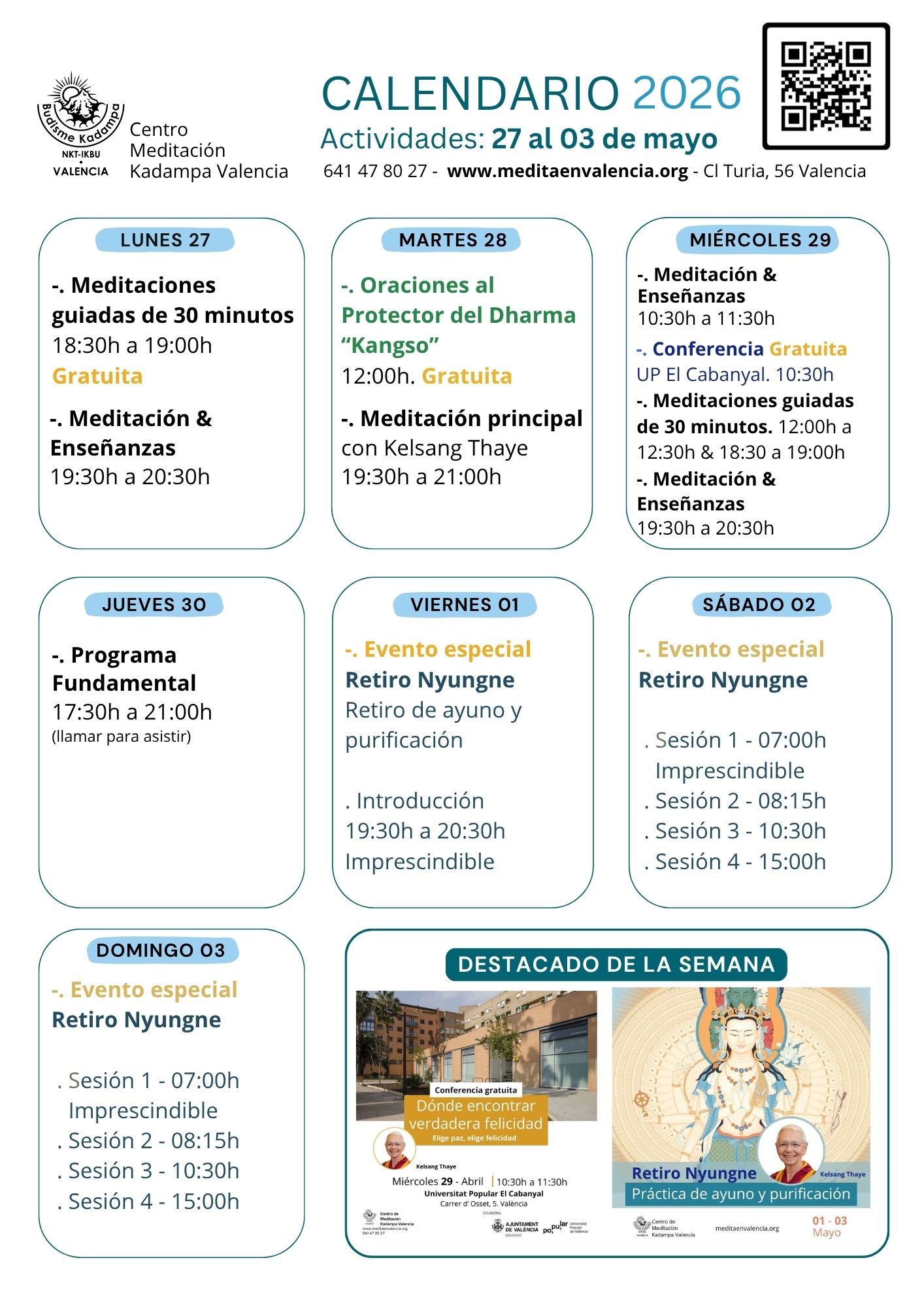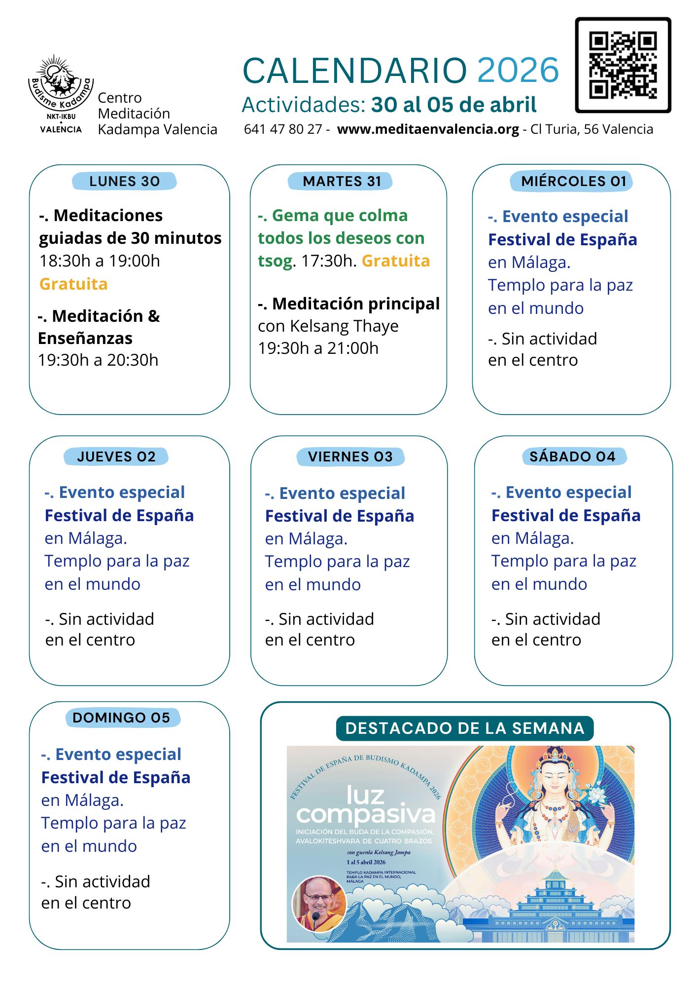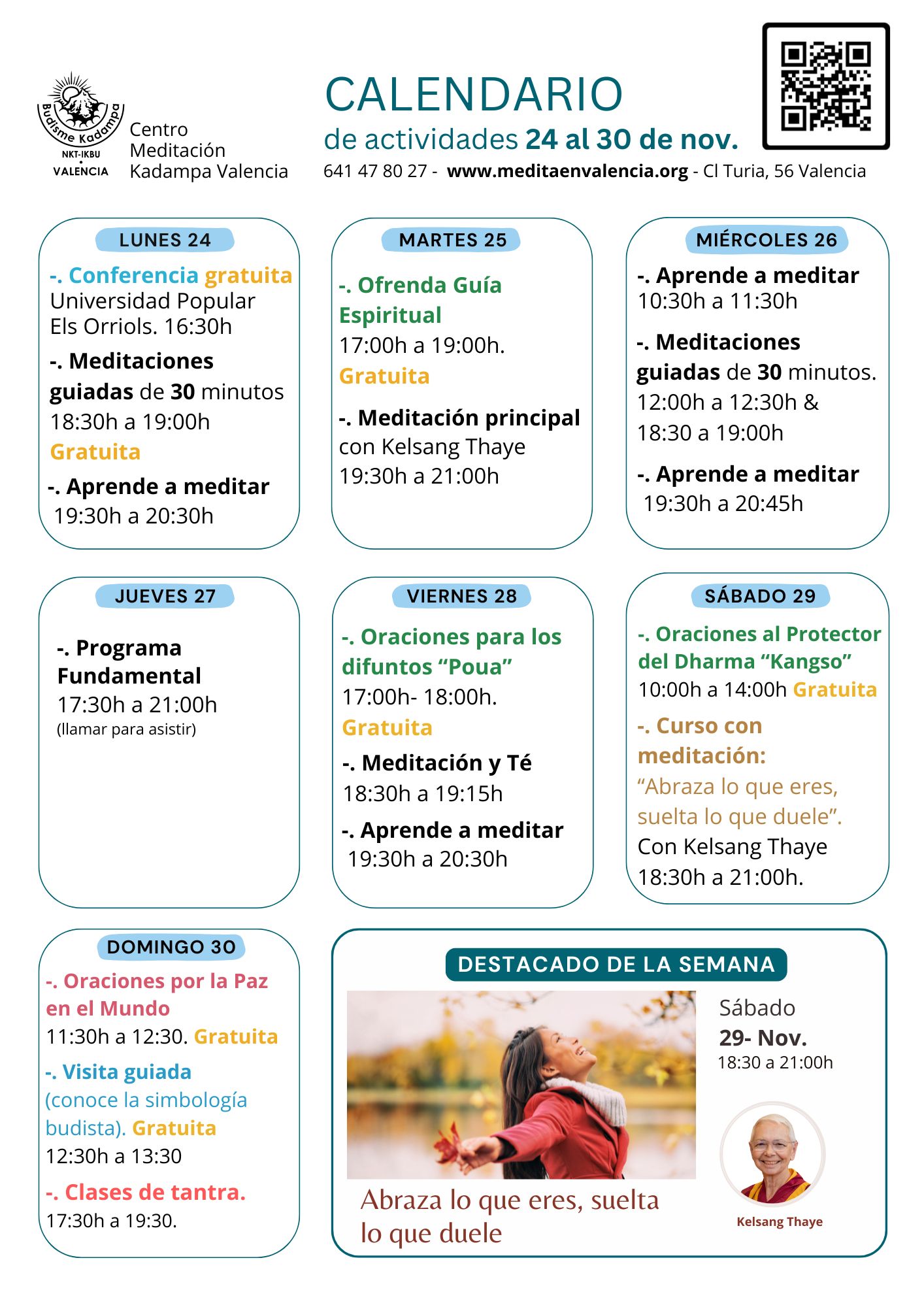 Nos reuniremos en el Centro de Meditación de la C/Turia, 56 a las 10:30h de la mañana, donde haremos una breve meditación guiada por la maestra Kelsang Thaye para relajar nuestra mente